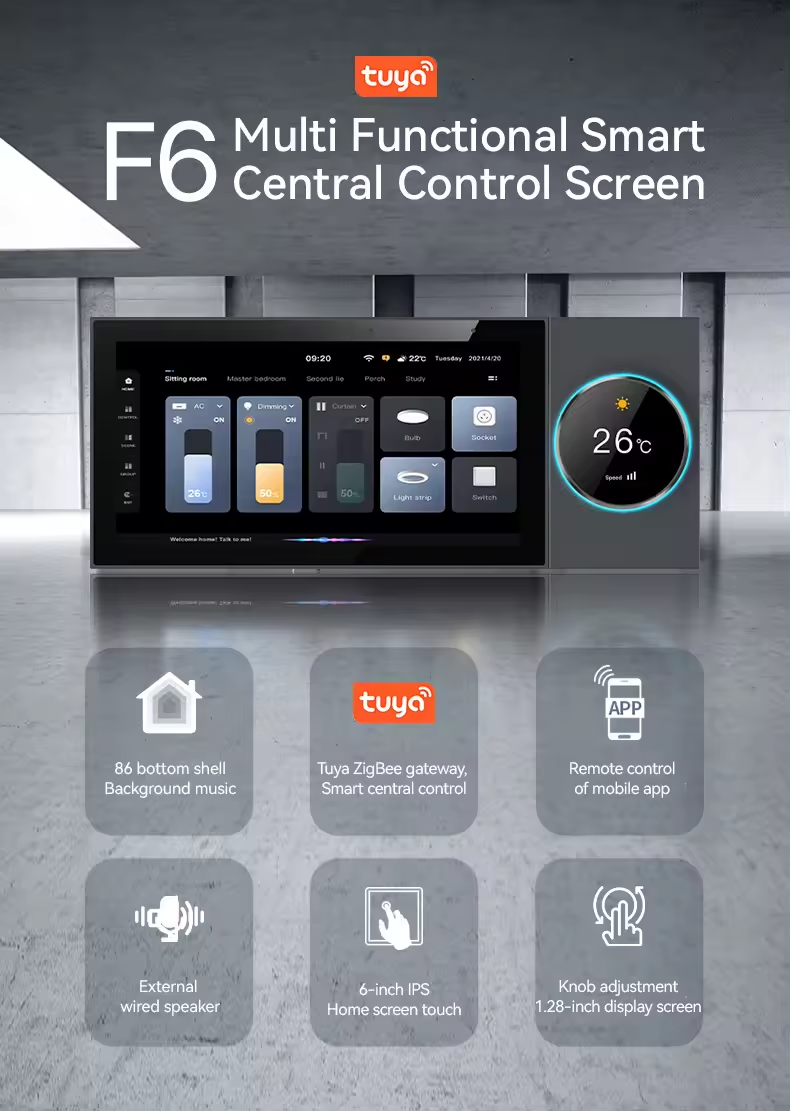 F6 is 6″ touch screen music playback & smart home control panel with build-in gateway.