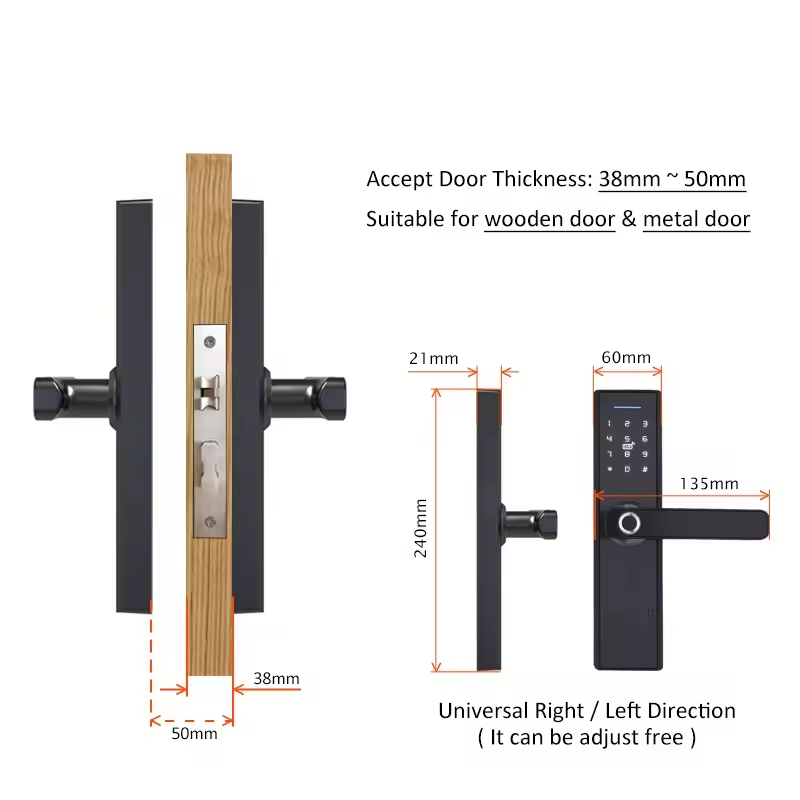 القفل الذكي للأبواب الخشبية مع قارئ بصمات الأصابع BLE