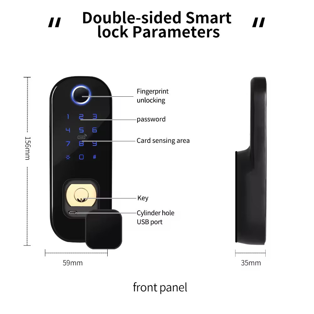 قفل باب ذكي مقاوم للماء Tuya Wifi قفل باب ذكي مقاوم للماء بكلمة مرور رقمية مزدوجة الوجهين ببصمة الإصبع قفل حافة إلكترونية في الهواء الطلق باب بوابة حديدية