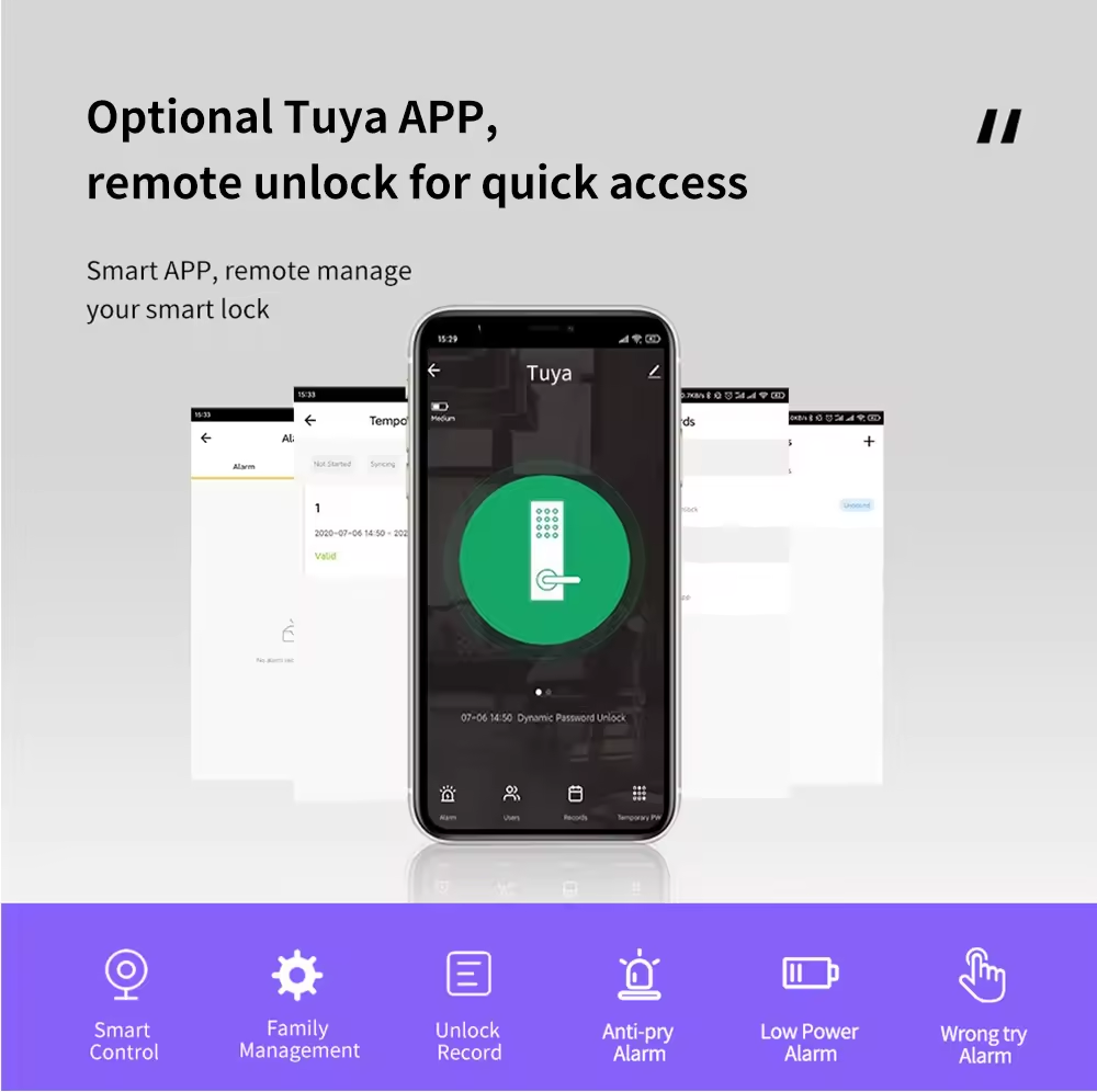 Data Storage Options Cloud, Memory Card, Tuya, TT lock