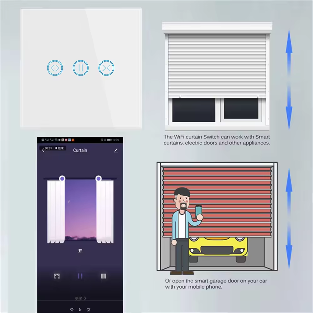 Tuya Smart Life WiFi Curtain Glass Touch Switch For Electric Motorized Blinds Roller Shutter With Alexa Google Home