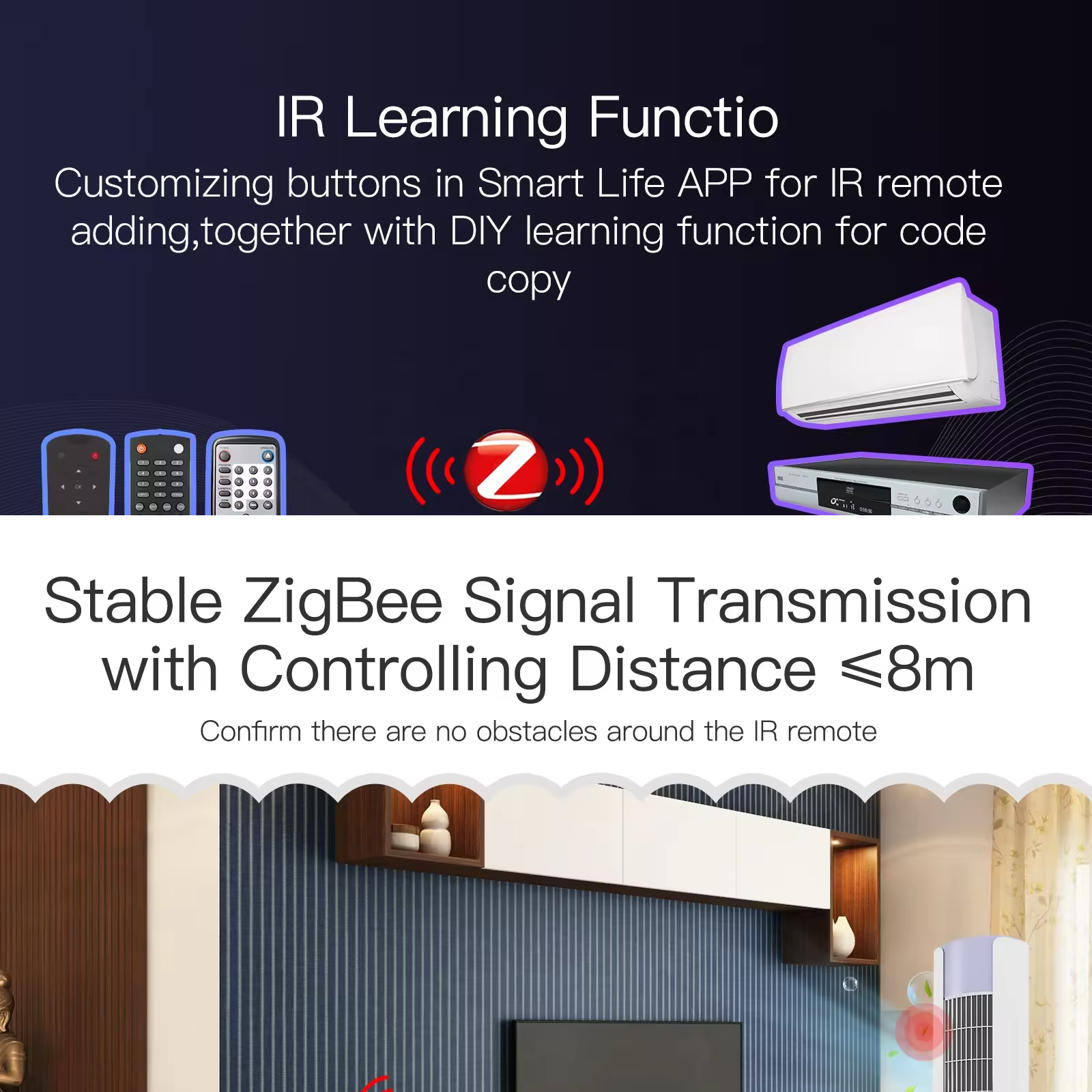 ZigBee Tuya Universal Smart Infrared Wireless Remote Control for Air Conditioner TV DVD